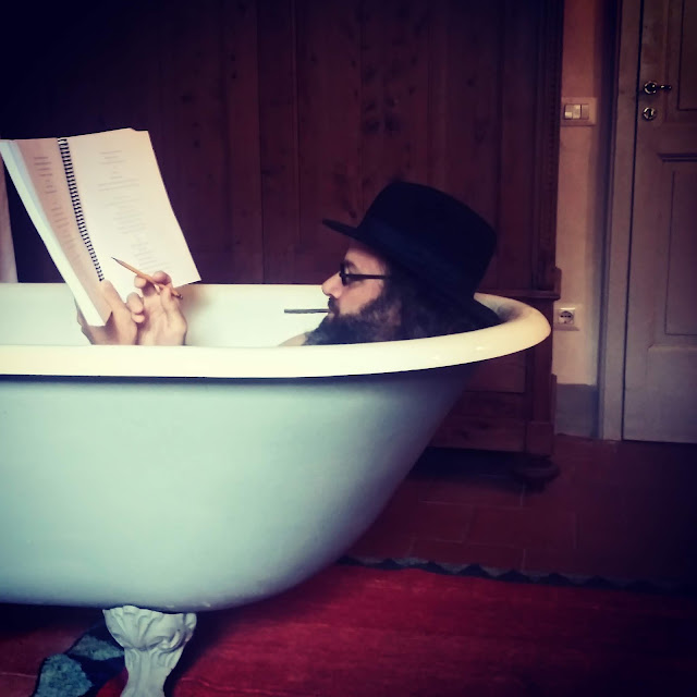 EDITING MY 300 PAGES PHILOSOPHICAL POEM IN MY BATH